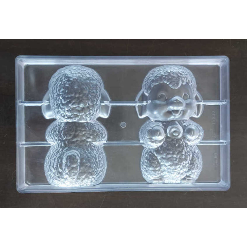 Stampo per cioccolato in policarbonato a forma di agnello. Il policarbonato è un materiale sicuro e adatto al contatto con gli alimenti. Garantisce un prodotto inalterato anche alla temperatura di fusione del cioccolato. Facile da usare e da pulire. Ideale per le attività commerciali o anche per casa. Made in Italy. Perfetto per creare n.1 coppia di agnello da mm.153x90.