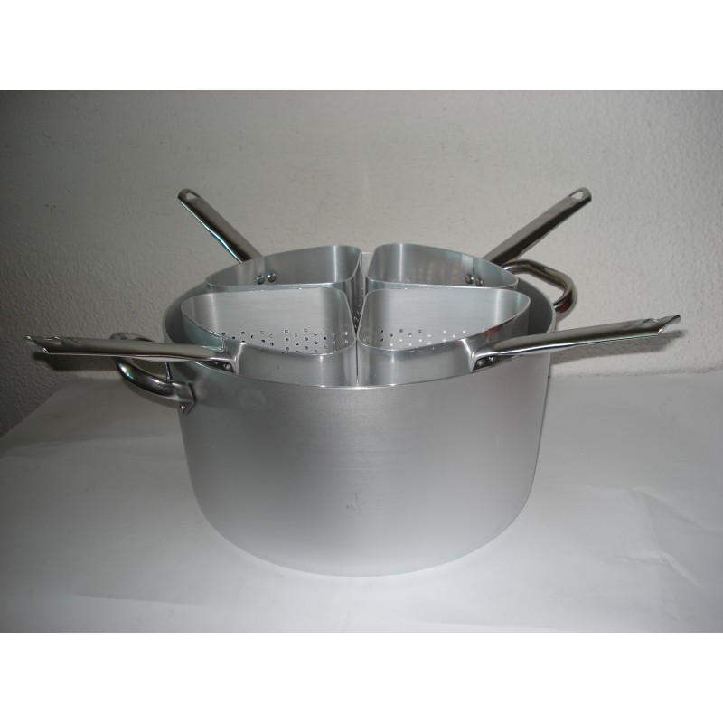 Casseruola in alluminio di alta qualità da cm.40, con manici tubolari inox. Realizzata in alluminio in quanto è un materiale molto leggero, resistente agli urti, alle abrasioni, non necessita di alcuna manutenzione ed è il migliore conduttore di calore. Inoltre è un materiale assolutamente igienico e idoneo al contatto con gli alimenti. Dotata di n.4 colapasta a spicchi, per la cottura di diversi tipi di pasta nello stesso tempo. Perfetta nelle cucine dei ristoranti, nelle gastronomie, ecc. Su richiesta si può avere anche il coperchio.
