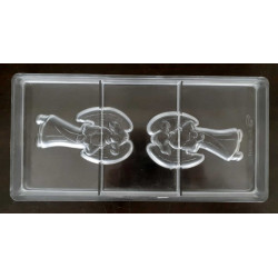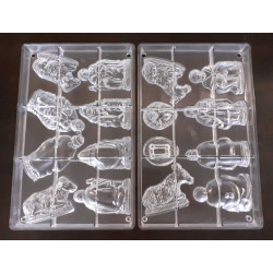 Stampo per cioccolato in policarbonato a forma di Babbo Natale. Il policarbonato è un materiale sicuro e adatto al contatto con gli alimenti. Garantisce un prodotto inalterato anche alla temperatura di fusione del cioccolato. Facile da usare e da pulire. Ideale per le attività commerciali o anche per casa. Made in Italy. Composto da n.2 stampi, fronte e retro. Perfetto per creare n.1 Babbo Natale completo.