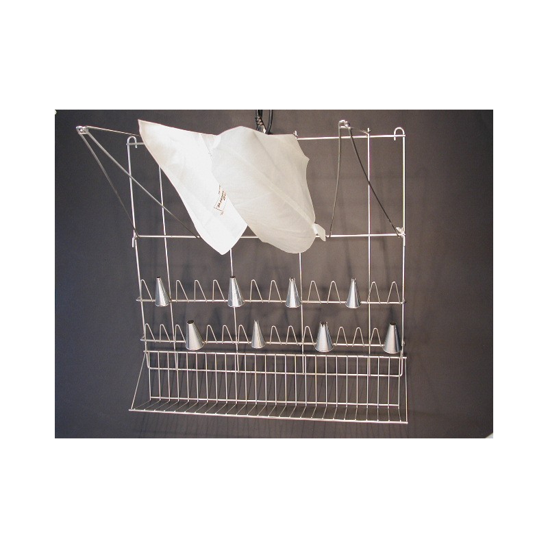 Porta sacchetti, beccucci e piccoli attrezzi. Materiale in acciaio inox. Misure cm.50x50. Ideale per tenere in ordine le varie attrezzature nei laboratori.