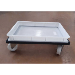 Carrello per cassette o ceste, realizzato in plastica dura e robusta di colore nero, con ruote snodate in nylon. Ideale per spostare cassette, ceste o contenitori, con estrema facilità. Portata Kg.250 circa. Misura interna cm.60,5x40,5 H cm.16,5.