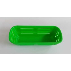 Cestino per la lievitazione dell'impasto del pane. Realizzato in plastica PP alimentare di colore verde. Robusto, igienico, facile da pulire, lavabile in lavastoviglie. Ideale per garantire una lievitazione perfetta grazie alle fessure di ventilazione. Formato rettangolare cm.28,5x13,5 h6,5 gr.500.