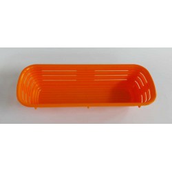 Cestino per la lievitazione dell'impasto del pane. Realizzato in plastica PP alimentare di colore arancione. Robusto, igienico, facile da pulire, lavabile in lavastoviglie. Ideale per garantire una lievitazione perfetta grazie alle fessure di ventilazione. Formato rettangolare cm.37x14,5 h7 Kg.1.