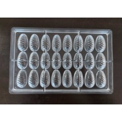 Stampo per cioccolato in policarbonato a forma di mela. Il policarbonato è un materiale sicuro e adatto al contatto con gli alimenti. Garantisce un prodotto inalterato anche alla temperatura di fusione del cioccolato. Facile da usare e da pulire. Ideale per le attività commerciali o anche per casa. Made in Italy. Composto da n.21 forme di mela da mm.48x31h14.