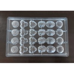 Stampo per cioccolato in policarbonato a forma di soggetti assortiti. Il policarbonato è un materiale sicuro e adatto al contatto con gli alimenti. Garantisce un prodotto inalterato anche alla temperatura di fusione del cioccolato. Facile da usare e da pulire. Ideale per le attività commerciali o anche per casa. Made in Italy. Perfetto per creare n.4 serie di soggetti assortiti da gr.9/10 - n.24 forme.