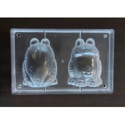Stampo per cioccolato in policarbonato a forma di rana. Il policarbonato è un materiale sicuro e adatto al contatto con gli alimenti. Garantisce un prodotto inalterato anche alla temperatura di fusione del cioccolato. Dotato di perni e fori posizionati agli angoli, che permettono di incastrare alla perfezione due stampi tra loro. Facile da usare e da pulire. Ideale per le attività commerciali o anche per casa. Made in Italy. Perfetto per creare n.1 coppia di rana da mm.120x90.