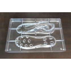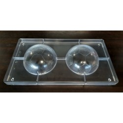 Stampo per cioccolato in policarbonato a forma di pallone da calcio. Il policarbonato è un materiale sicuro e adatto al contatto con gli alimenti. Garantisce un prodotto inalterato anche alla temperatura di fusione del cioccolato. Dotato di perni e fori posizionati agli angoli, che permettono di incastrare alla perfezione due stampi tra loro. Facile da usare e da pulire. Ideale per le attività commerciali o anche per casa. Made in Italy. Perfetto per creare n.1 coppia di pallone da calcio da mm.120.