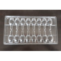 Stampo per cioccolato in policarbonato a forma di bottiglia di spumante. Il policarbonato è un materiale sicuro e adatto al contatto con gli alimenti. Garantisce un prodotto inalterato anche alla temperatura di fusione del cioccolato. Dotato di perni e fori posizionati agli angoli, che permettono di incastrare alla perfezione due stampi tra loro. Facile da usare e da pulire. Ideale per le attività commerciali o anche per casa. Made in Italy. Perfetto per creare n.1 coppia di bottiglia di spumante da mm.310x87.