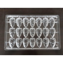 Stampo per cioccolato in policarbonato a forma di ghianda. Il policarbonato è un materiale sicuro e adatto al contatto con gli alimenti. Garantisce un prodotto inalterato anche alla temperatura di fusione del cioccolato. Facile da usare e da pulire. Ideale per le attività commerciali o anche per casa. Made in Italy. Composto da n.32 forme di ghianda da mm.43x25h12.