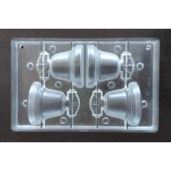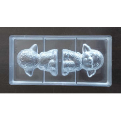 Stampo per cioccolato in policarbonato a forma di agnello. Il policarbonato è un materiale sicuro e adatto al contatto con gli alimenti. Garantisce un prodotto inalterato anche alla temperatura di fusione del cioccolato. Facile da usare e da pulire. Ideale per le attività commerciali o anche per casa. Made in Italy. Composto da n.2 stampi, fronte e retro, completi di incastri e ganci che permettono di tenere uniti i due stampi tra loro. Perfetto per creare n.1 forma di agnello completo da mm.290x215.
