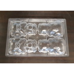 Stampo per cioccolato in policarbonato a forma di tartaruga. Il policarbonato è un materiale sicuro e adatto al contatto con gli alimenti. Garantisce un prodotto inalterato anche alla temperatura di fusione del cioccolato. Dotato di perni e fori posizionati agli angoli, che permettono di incastrare alla perfezione due stampi tra loro. Facile da usare e da pulire. Ideale per le attività commerciali o anche per casa. Made in Italy. Perfetto per creare n.18 forme di tartarughe da mm.50x35.