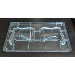 Stampo per cioccolato in policarbonato a forma di scarpone. Il policarbonato è un materiale sicuro e adatto al contatto con gli alimenti. Garantisce un prodotto inalterato anche alla temperatura di fusione del cioccolato. Dotato di perni e fori posizionati agli angoli, che permettono di incastrare alla perfezione due stampi tra loro. Facile da usare e da pulire. Ideale per le attività commerciali o anche per casa. Made in Italy. Perfetto per creare n.1 coppia di scarpone da mm.140x94.