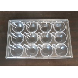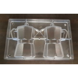 Stampo per cioccolato in policarbonato a forma di moka. Il policarbonato è un materiale sicuro e adatto al contatto con gli alimenti. Garantisce un prodotto inalterato anche alla temperatura di fusione del cioccolato. Dotato di perni e fori posizionati agli angoli, che permettono di incastrare alla perfezione due stampi tra loro. Facile da usare e da pulire. Ideale per le attività commerciali o anche per casa. Made in Italy. Perfetto per creare n.1 coppia di moka da mm.150x127.