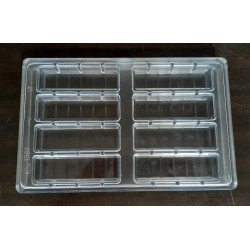 Stampo per cioccolato in policarbonato a forma di torrone. Il policarbonato è un materiale sicuro e adatto al contatto con gli alimenti. Garantisce un prodotto inalterato anche alla temperatura di fusione del cioccolato. Facile da usare e da pulire. Ideale per le attività commerciali o anche per casa. Made in Italy. Composto da n.8 forme di torrone da mm.104x30h21.