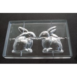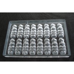 Stampo per cioccolato in policarbonato a forma di coniglio. Il policarbonato è un materiale sicuro e adatto al contatto con gli alimenti. Garantisce un prodotto inalterato anche alla temperatura di fusione del cioccolato. Facile da usare e da pulire. Ideale per le attività commerciali o anche per casa. Made in Italy. Composto da n.16 forme di coniglio da mm.70x25.