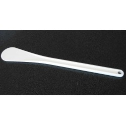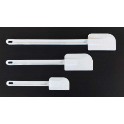 Spatola per dolci con scalino in plastica bianca. Completa di foro per essere appesa. Idonea al contatto con alimenti. Utile per stendere la glassa o la crema su dolci e torte. Ideale per l'uso con antiaderenti.