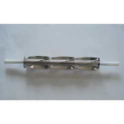 Rullo taglia croissant in acciaio inox con manici in teflon. Dotato di tagli per segnare la pasta. Professionale. Idoneo al contatto con gli alimenti. Utile per realizzare tanti triangoli da cm.9,7x21 in modo veloce, semplice e pratico. Ideale per gli appassionati di pasticceria. Made in Germany.