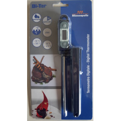 Termometro digitale a sonda con punta ad immersione in acciaio inox da cm.12. Dotato di coperchio per punta in plastica di colore nero. Temperatura -50 +300. Adatto per misurare la temperatura di cibi, bevande, ecc.
