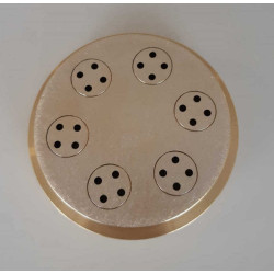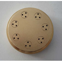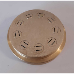 Trafila per la macchina della pasta La Parmigiana mod. D35 o D45. Formato tagliatella da mm.6. Materiale bronzo. Il bronzo fa si che la pasta rimanga più ruvida. Made in Italy. Diametro stampo cm.8,7 sotto. Misura e spessore tagliatella anche su richiesta.