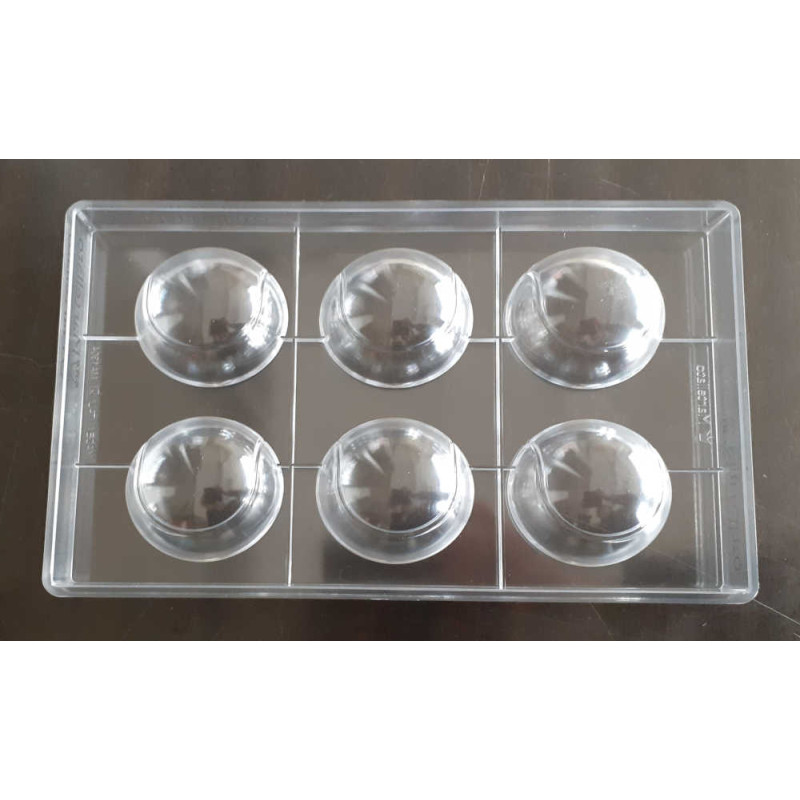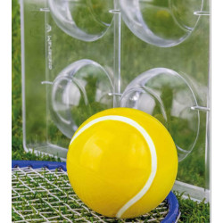 Stampo per cioccolato in policarbonato a forma di pallina da tennis o padel . Il policarbonato è un materiale sicuro e adatto al contatto con gli alimenti. Garantisce un prodotto inalterato anche alla temperatura di fusione del cioccolato. Facile da usare e da pulire. Ideale per le attività commerciali o anche per casa. Made in Italy. Composto da n.6 forme di mezza pallina da tennis diam. cm.6 h3.