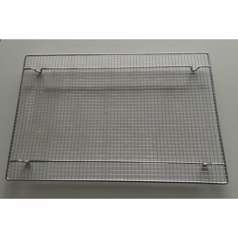 Griglia a rete rettangolare in acciaio inox. Dotata di piedini per facilitare il lavoro. Idonea al contatto con gli alimenti. Si inserisce perfettamente in una teglia cm.60x40. Facile da pulire anche in lavastoviglie. Ideale anche per il cioccolato. Misura cm.58x39.