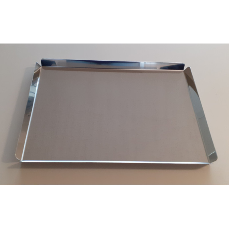 Vassoio da esposizione in acciaio inox, con angoli aperti. Ideale per l'esposizione di paste, pizze, focacce, ecc. Idoneo al contatto con gli alimenti. Lavabile anche in lavastoviglie. Perfetto nelle vetrine dei bar, pasticcerie, salumerie, gastronomie, ecc. Made in Italy.