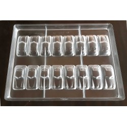 Stampo per cioccolato in policarbonato a forma di automobile. Il policarbonato è un materiale sicuro e adatto al contatto con gli alimenti. Garantisce un prodotto inalterato anche alla temperatura di fusione del cioccolato. Facile da usare e da pulire. Ideale per le attività commerciali o anche per casa. Made in Italy. Composto da n.16 forme di automobiline da mm.60x28h18.