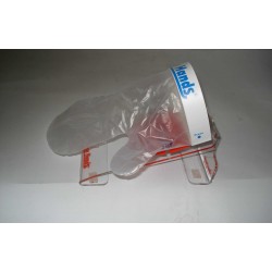 Guanto per servire completo di base magnetizzata in plexiglass, bracciale calamitato e n.5 guanti. Permette di infilare e sfilare il guanto in modo pratico e veloce evitando il contatto delle mani nude con i generi alimentari. Igiene a portata di mano. Ideale per panifici, pasticcerie, negozi alimentari, supermercati, bar, negozi ortofrutticoli, pescherie, ecc. Confezione di guanti di ricambio n.100 pezzi da acquistare a parte.
