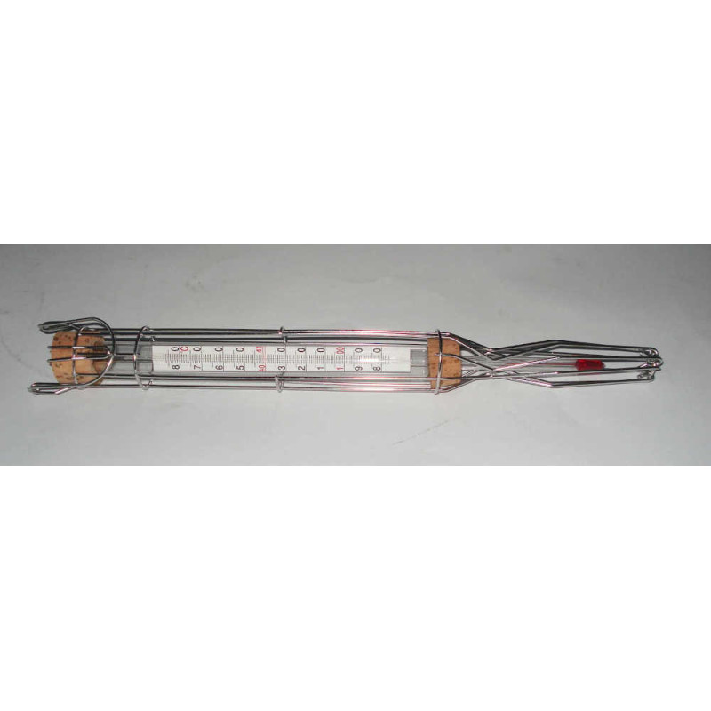 Termometro caramellometro per lo zucchero, con corpo in vetro, gabbia e gancio inox. Temperatura +80 +180. Perfetto nelle fasi di cottura dello zucchero, del caramello e degli sciroppi. Lunghezza cm.32,5.
