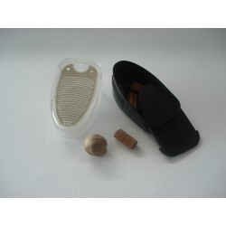 Grattugia per spezie Microplane, elegante e dal bellissimo design. Ideale per tagliare in maniera efficiente noce moscata, cannella, ecc. La parte superiore è ideale per conservare la noce moscata intera. Il contenitore inferiore contiene le spezie grattugiate. Facile da usare e da pulire. Perfetta anche come idea regalo. Made in USA. Misura cm.8x4,5h5.
