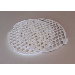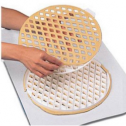 Griglia per crostata composta da 2 pezzi. Materiale in plastica bianca. Diametro cm.30. Idoneo al contatto con gli alimenti. Ideale per realizzare una perfetta griglia sulla crostata. Utilizzo: stendere la pasta con il mattarello sulla carta da forno, appoggiarla delicatamente sulla griglia dalla parte non liscia, passare con il mattarello sulla pasta più volte per farla aderire bene alla griglia e togliere la pasta in eccesso. Sollevare delicatamente la parte della griglia con sopra la pasta prendendola dalle alette laterali. Rovesciare la pasta sulla crostata.