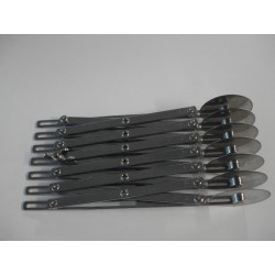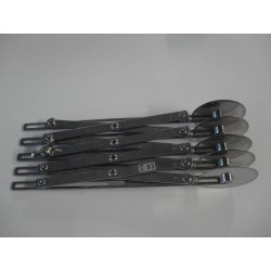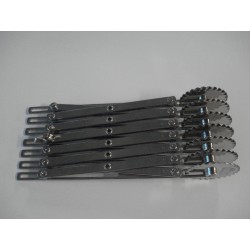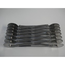 Tagliapasta in acciaio inox, regolabile, estensibile. Chiamato dagli chef e dai pasticcieri anche "bicicletta". Dotato di dispositivo di bloccaggio per mantenere la larghezza desiderata durante la fase di taglio, così da evitare il rischio di righe storte o non uniformi. Professionale. E' formato da 7 lame lisce + 7 lame zigrinate da cm.5,5. Ideale per tagliare strisce di pasta tutte uguali da cm.1 fino a cm.12,5.