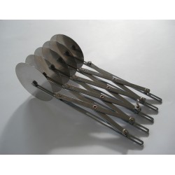 Tagliapasta in acciaio inox, regolabile, estensibile. Chiamato dagli chef e dai pasticcieri anche "bicicletta". Dotato di dispositivo di bloccaggio per mantenere la larghezza desiderata durante la fase di taglio, così da evitare il rischio di righe storte o non uniformi. Professionale. E' formato da 5 o 7 lame lisce da cm.9,5. Ideale per tagliare strisce di pasta tutte uguali da cm.1 fino a cm.12,5.