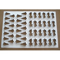 Griglia tagliabiscotti con formato stella da mm.35. Realizzata in materiale plastico di alta qualità. Idoneo al contatto con gli alimenti. Pratico e facile da lavare. Ideale per la produzione di soggetti di pasta frolla, sfoglia ed altri impasti. Si possono realizzare velocemente n.95 biscotti a forma di stella. Dimensioni griglia cm.57,5x39. Utilizzo: mettere la griglia in una teglia di cottura da cm.60x40, stendere la pasta e posizionarla sopra la griglia dalla parte non liscia, passarci sopra con un mattarello in modo da fare cadere i biscotti direttamente nella teglia, già pronti per la cottura. Made in Italy.
