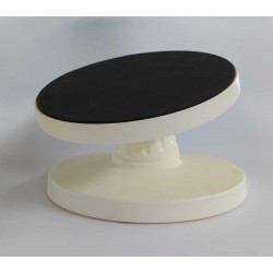 Giratorte in plastica con piatto antiscivolo che ruotandolo può essere inclinato o dritto. Dotato di piedini antiscivolo per una maggiore stabilità. Ideale per la decorazione di torte, soggetti di cioccolato e altro. Misura cm.23 h14.