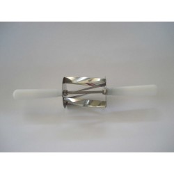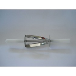 Rullo taglia croissant in acciaio inox con manici in teflon. Professionale. Idoneo al contatto con gli alimenti. Utile per realizzare tanti triangoli da cm.5,5x7 in modo veloce, semplice e pratico. Ideale per gli appassionati di pasticceria. Made in Italy.