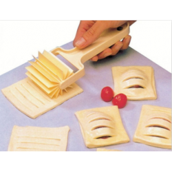 Rullo tagliapasta in acciaio inox con manico in teflon. Professionale. Idoneo al contatto con gli alimenti. Perfetto per realizzare dei tagli paralleli sulla pasta sfoglia o frolla. Ideale per lo strudel. Lunghezza taglio cm.6.
