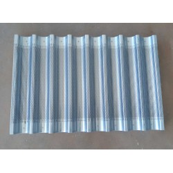Teglia da forno ondulata in ottimo alluminio forato, professionale. Questo materiale garantisce un'ottima combinazione tra la trasmissione del calore dell'alluminio con il passaggio dell'aria calda attraverso la foratura. La struttura è su traversino che aumenta la rigidezza e la resistenza al calore e al peso. Idonea al contatto con gli alimenti. Può essere usata anche nel congelatore o abbattitore, ed essendo forata anticipa i tempi di congelamento o abbattimento. Misura cm.60x40 a 8 canali da cm.40. Ideale per cuocere nei forni ventilati. Perfetta per la cottura in forno di prodotti alimentari.